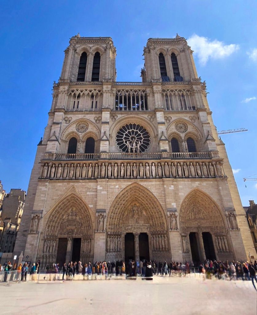 On 15 April 2019, a fire severely damaged the cathedral’s roof and spire. An extensive restoration project began immediately with the aim of rebuilding the structure using traditional craftsmanship wherever possible. The reconstruction includes the reinstatement of Viollet-le-Duc’s 19th-century spire.
